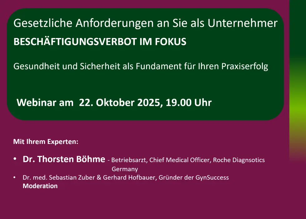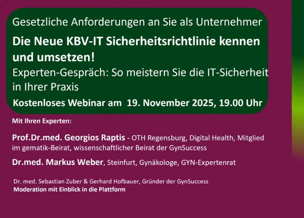 Im Sommer 2024 haben wir GynSuccess ins Leben gerufen. Dr. med. Sebastian Zuber, ein erfahrener Gynäkologe und renommierter Referent für Neuniederlassungsseminare, sowie Gerhard Hofbauer, der auf über 30 Jahre Wirken im pharmazeutischen Vertrieb zurückblickt und zahlreiche Frauenarztpraxen begleitet hat, bilden das Fundament von GynSuccess.